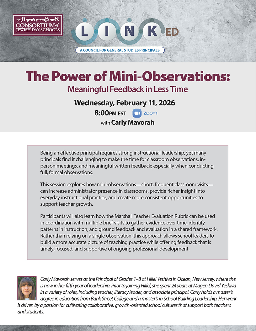 The Consortium of Jewish Day Schools (CoJDS) is dedicated to the empowerment, development, and improvement of Jewish day schools across the world using traditional Torah values as our guide.